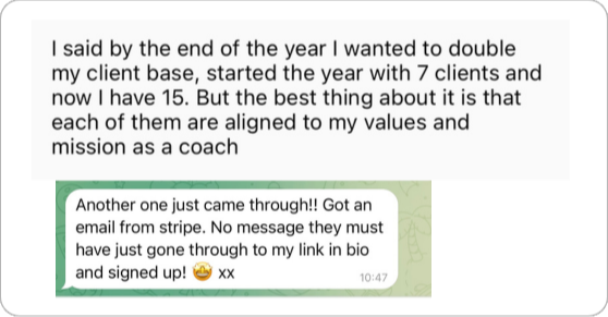 Iâve helped hundreds of coaches do the exact same thing â break free from fear, find their voice, and build businesses that actually pay them what they deserve.